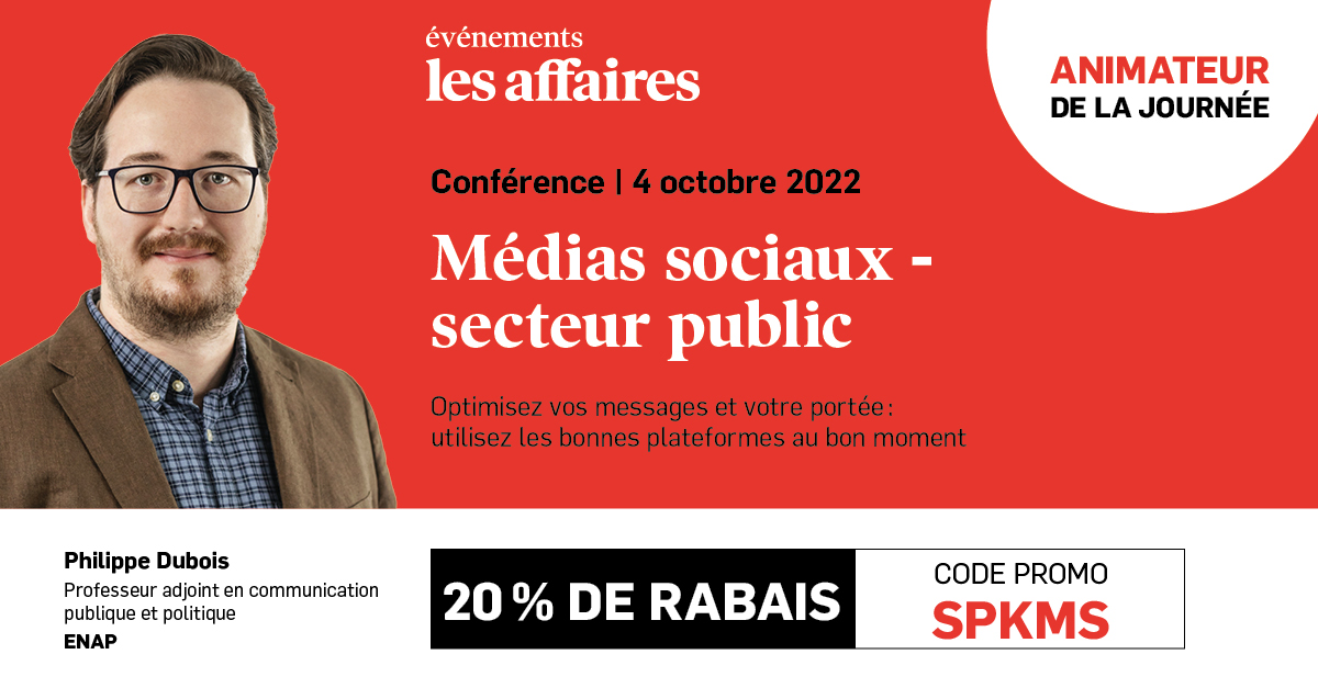 À l’invitation de Les Affaires, j’aurai le plaisir d’animer l’évènement Médias sociaux – secteur public qui aura lieu le 4 octobre prochain (en ligne).