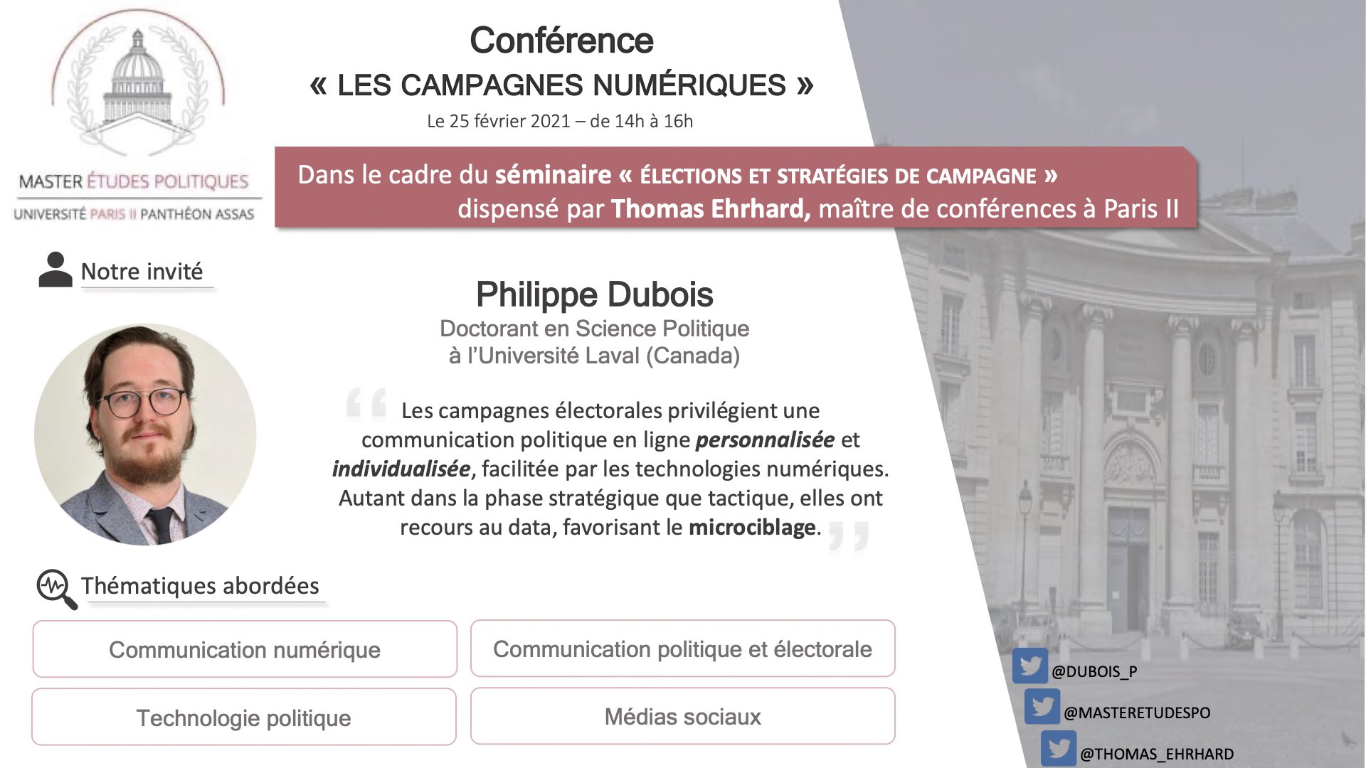 Séminaire « Élections et stratégies de campagne » (Hiver 2021)