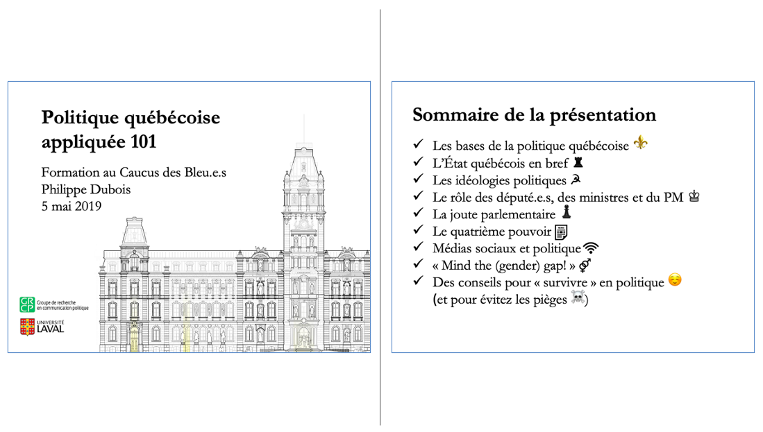 Titre de la présentation: Politique québécoise appliquée 101 (sommaire)