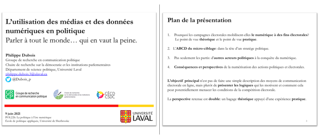 Titre de la présentation: L’utilisation des médias et des données numériques en politique (sommaire)